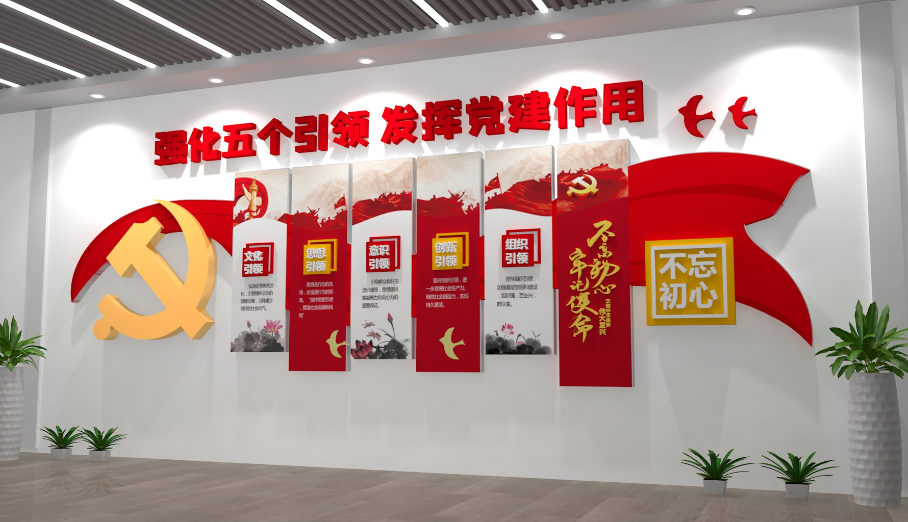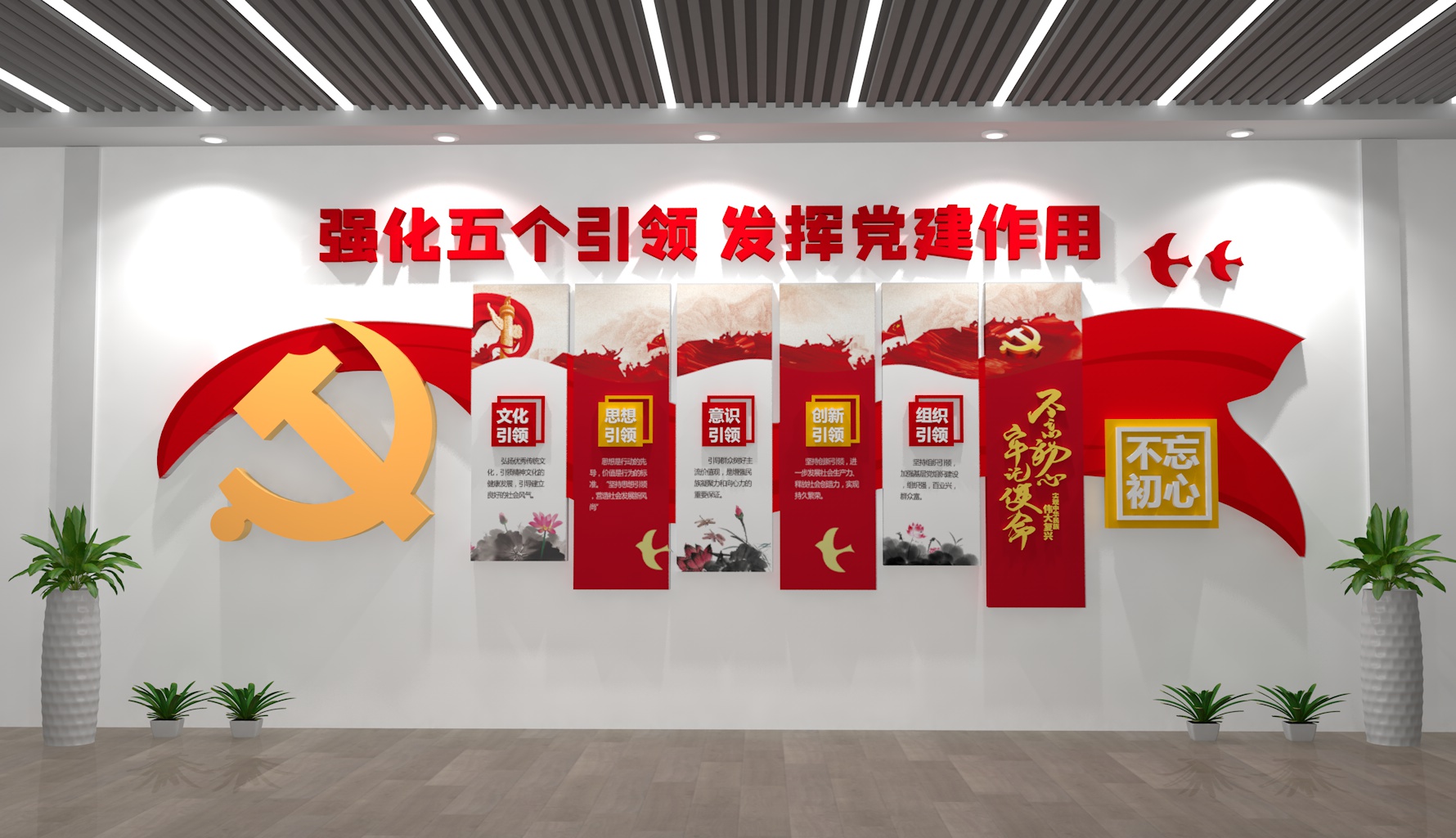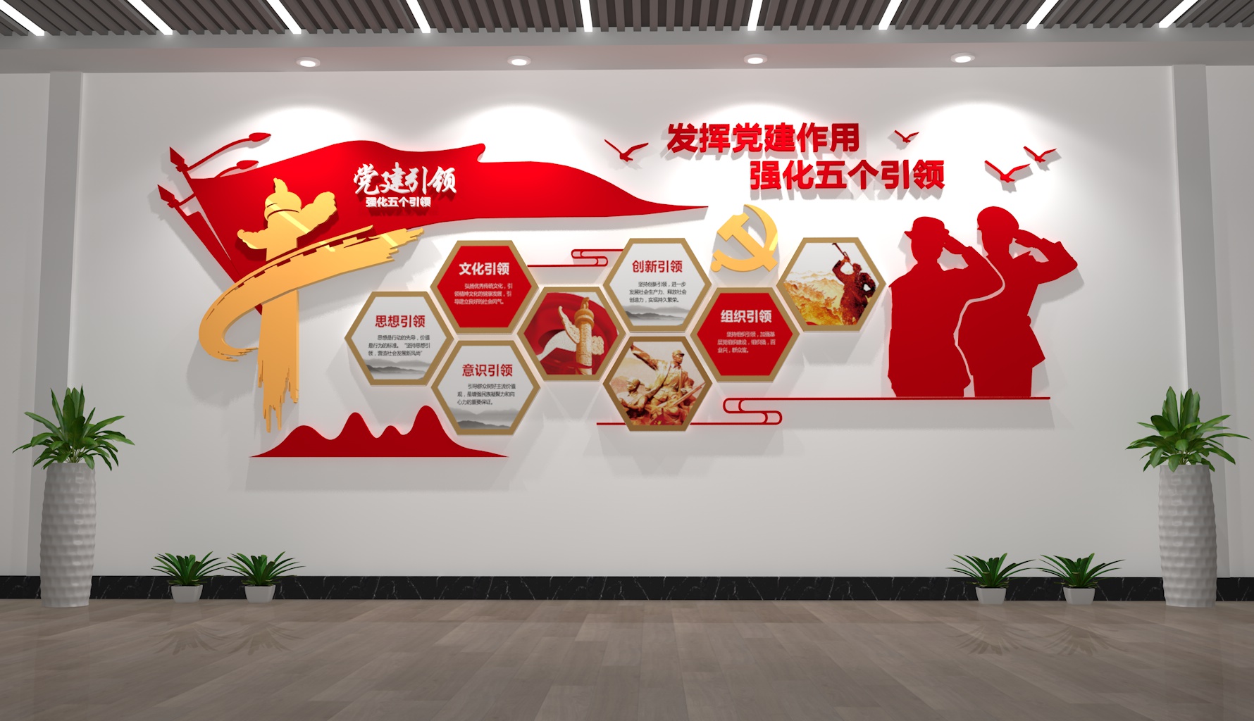 - 細(xì)節(jié)點(diǎn)綴:加入紅色元素小裝飾(如微型黨旗、黨章擺件、紅色書籍模型),企業(yè)展廳可結(jié)合行業(yè)特色(如電力企業(yè)加“黨建+安全用電”圖標(biāo),農(nóng)業(yè)企業(yè)加“黨建+鄉(xiāng)村振興”插畫)。